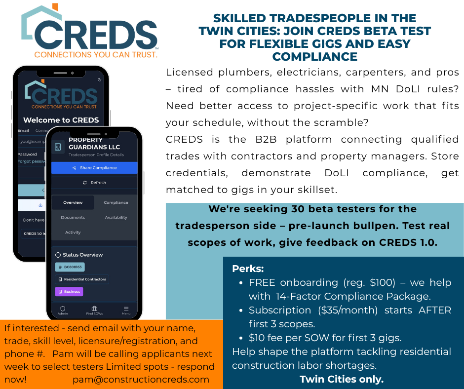 This is your chance to shape the platform, snag early work, and be part of solving the chronic labor shortage hitting residential construction.